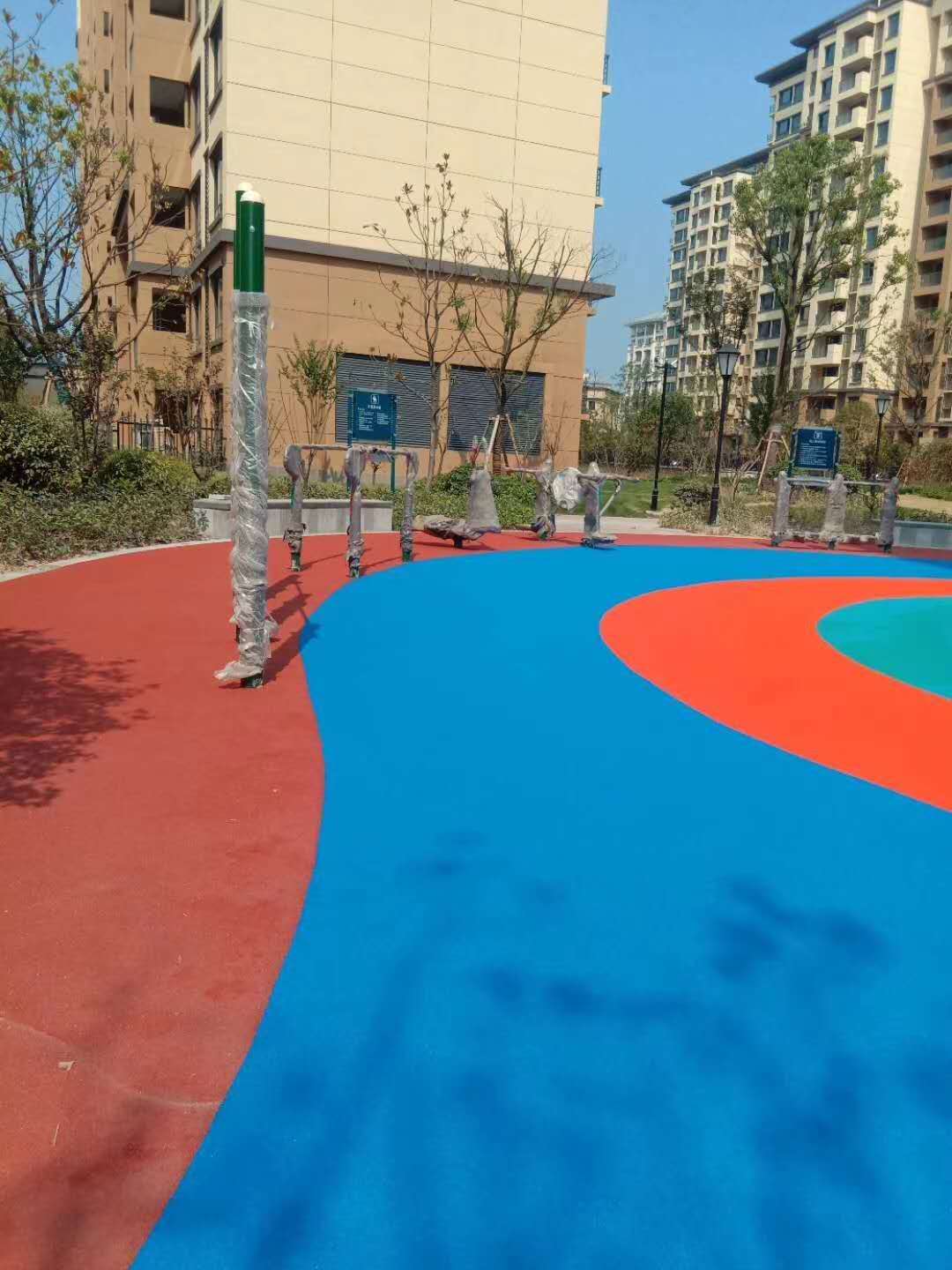 ??13、色彩:表面颜色应柔和,场地颗粒状表层材料,应能防止刺眼的反射,美观耐久。